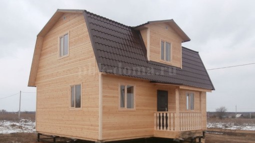 В комплектацию дома входит: фундамент свайно-винтовой, обваренный трубой, каркас из доски 40х150 мм, обработан антисептиком, утепление 150 мм, наружная и внутренняя отделка, кровля металлочерепица, отделка пола и потолка, отделка мансарды, окна, двери, доставка, сборка.