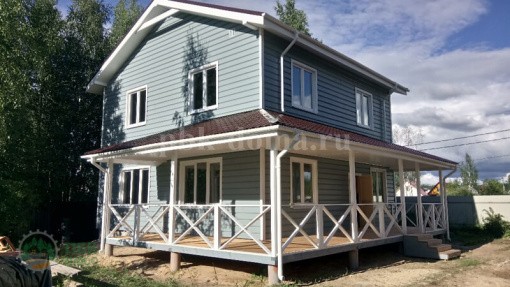 Закончено строительство каркасно-щитового дома 9 на 9 метров с угловой террасой под чистовую отделку. Монтаж проходил в СНТ Павловское, Ленинградской области.