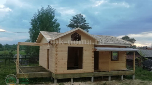 В комплектацию дома входит: профилированный брус 185х140 мм с пропилом, сборка сруба на деревянные нагеля в теплый угол, в оконных и дверных проемах ройки, металлочерпица, пластиковые окна, двери, внутренняя отделка пола и потолка, водосточная система, утепление пола и потолка 200 мм, доставка, сборка.