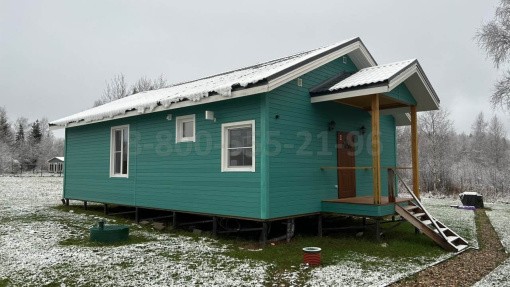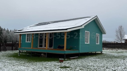 Выполненные работы: Cвайно-винтовой фундамент, силовой каркас из сухой калиброванной доски 50х150мм, утепление 150мм, ветрозащита-плиты БЕЛТЭРМО, отделка снаружи и внутри, покраска внутри и снаружи, кровля, окна и двери, электрика, отопление, сантехника, доставка, монтаж.