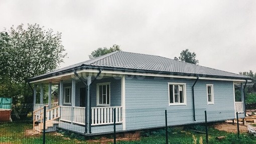 силовой-каркас камерной сушки, утепление 200 мм, наружная и внутренняя отделка (имитация бруса камерной сушки), кровля - металлочерепица, установка ПВХ окон с двухкамерными стеклопакетами, монтаж межкомнатных и входных дверей, водосточная система «Дёке», москитные сетки, композитная террасная доска, покраска дома, электрика.