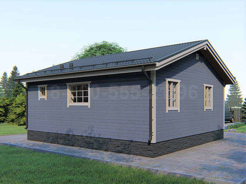 Внешний контур дома имеет строго прямоугольную форму, сверху покрыт симметричной двухскатной крышей. Окраска стен и кровли может быть выполнена в едином стилистическом решении.