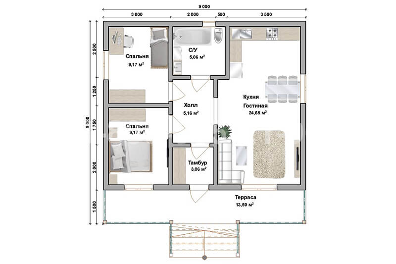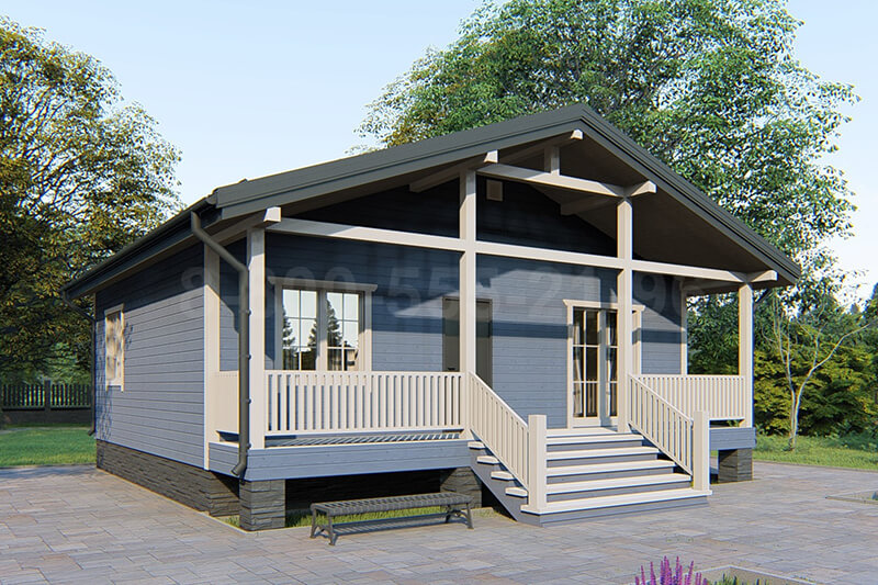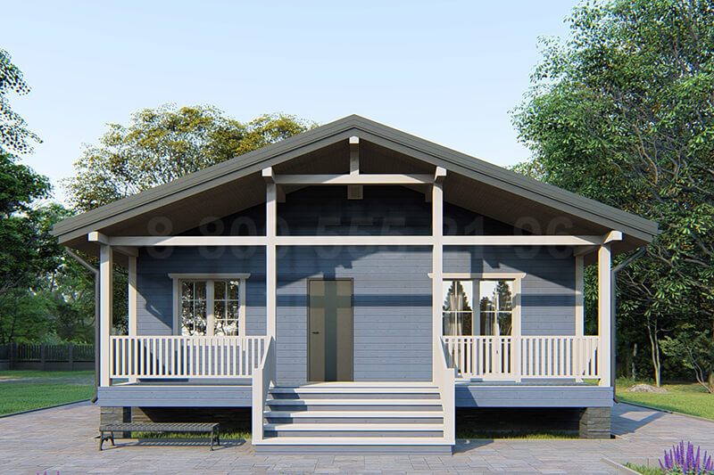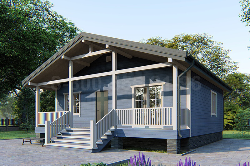 Одноэтажный дом из бруса «Лазурь» 9х9 с террасой