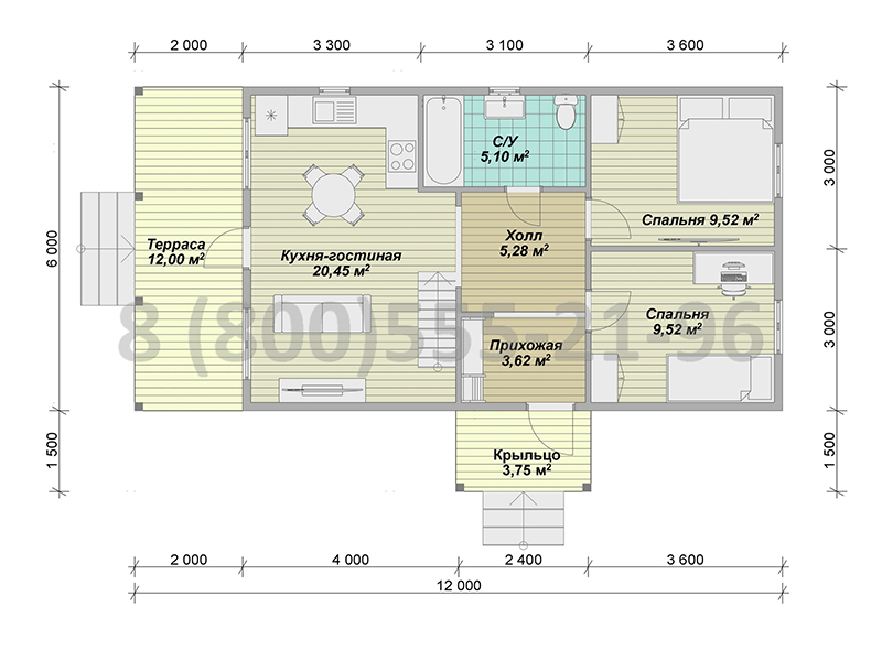 Внешняя отделка: Имитации бруса сорт "АВ".