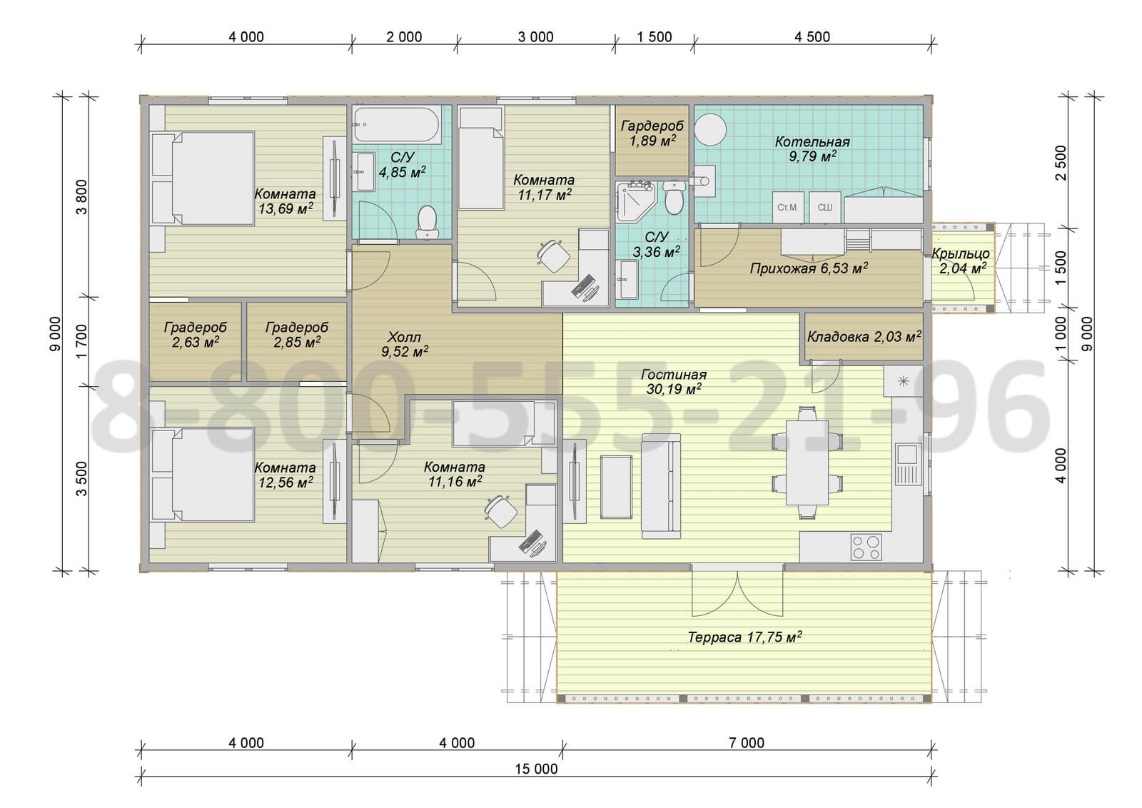 Внешняя отделка: Имитации бруса сорт "АВ".
