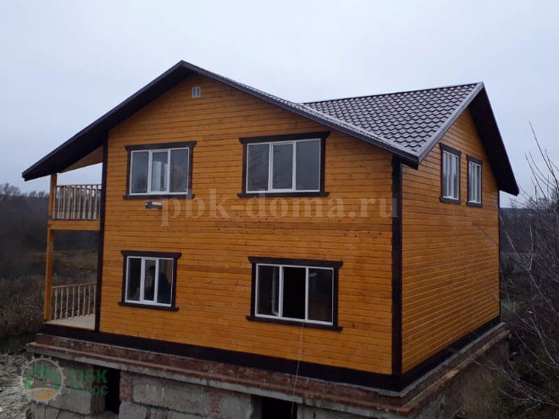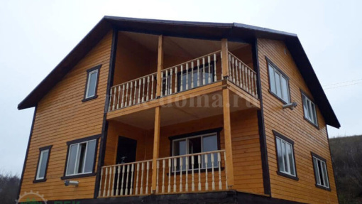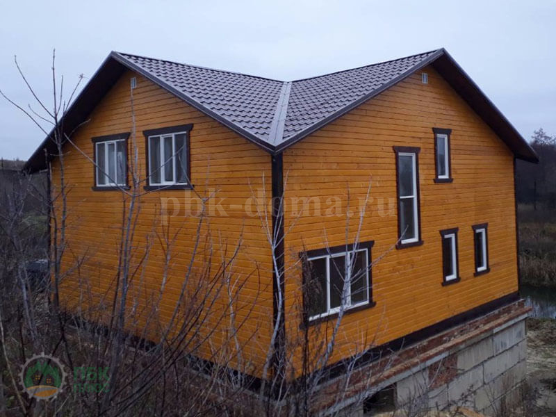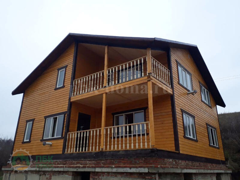Построили дом по индивидуальному проекту из профилированного бруса 11 на 9,7 м в полтора этажа в с. Нижнедевицк, Воронежской области для ПМЖ. Большой дом, который мы строили за 1000 км от нашего производства. На объект с перерывом в три недели приезжало три больших грузовых машины с прицепом, которые привозили материал.