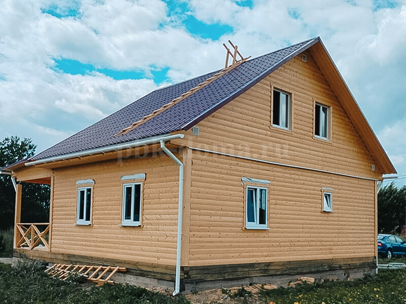 Двухэтажный дом из бруса 10х9м в Ленинградской области.