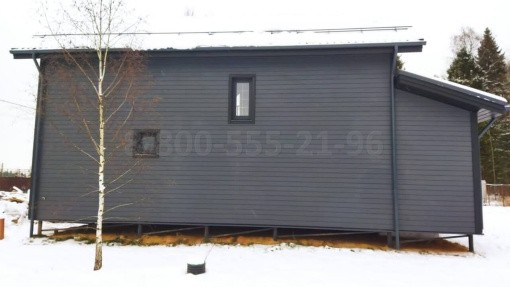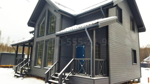 Cвайно-винтовой фундамент, силовой каркас из сухой доски 50х150мм, утепление 150мм, контрутепление 50мм, ветрозащита-плиты БЕЛТЭРМО, отделка снаружи и внутри, покраска внутри и снаружи, кровля, окна и двери, водосточная система, снегозадержатели, электрика, отопление, доставка, монтаж.