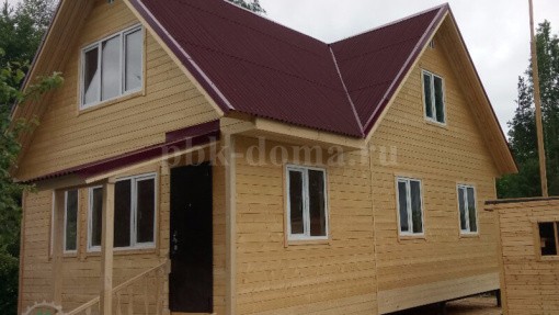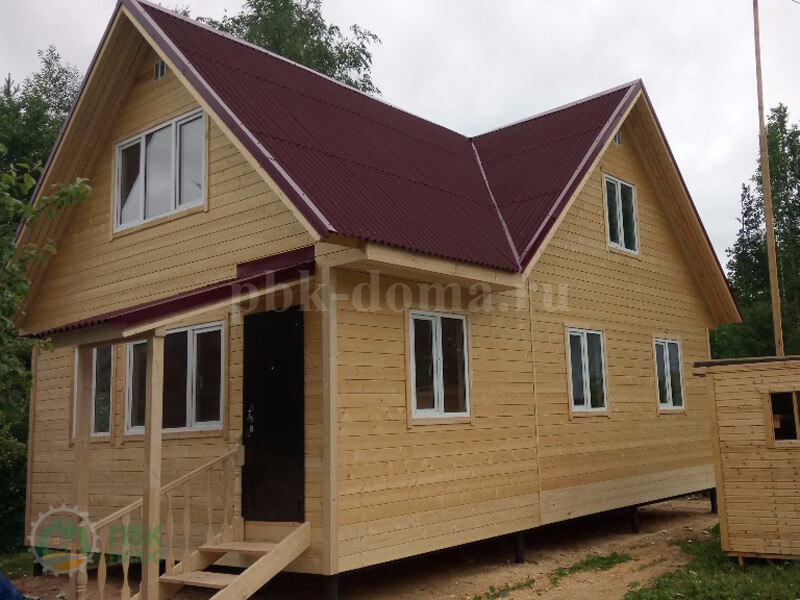 Комплектация дома: фундамент свайно-винтовой, каркас из доски 50х150 мм, обработан антисептиком, утепление стен 150 мм, утепление пола и потолка 200 мм, наружная и внутренняя отделка, отделка пола и потолка, окна ПВХ, двери, кровля ондулин, лестница на второй этаж, доставка, сборка.