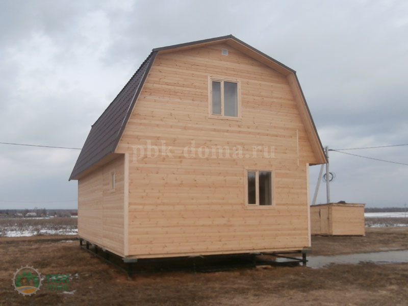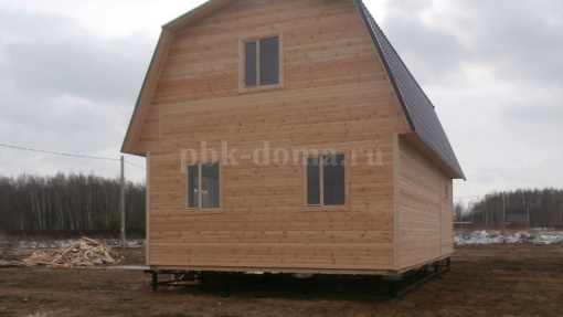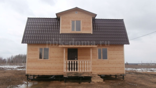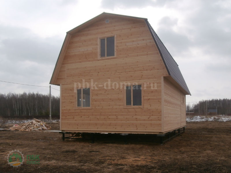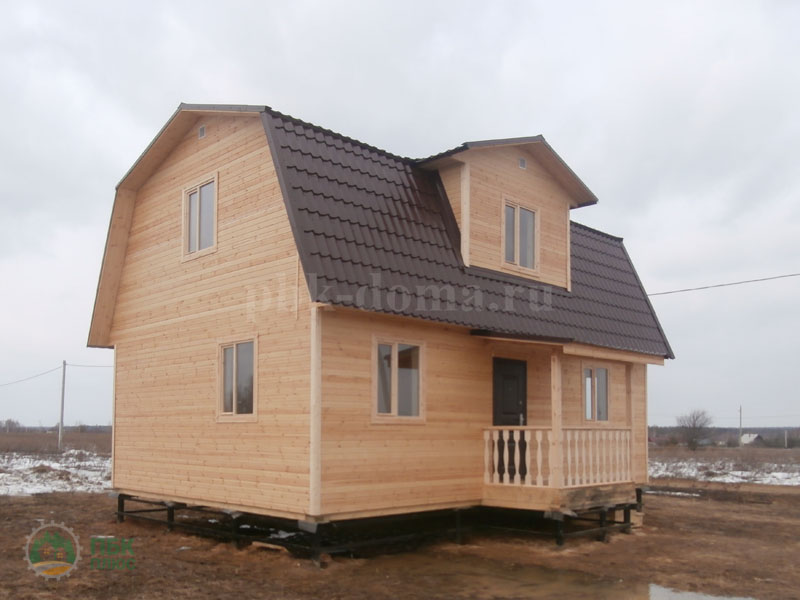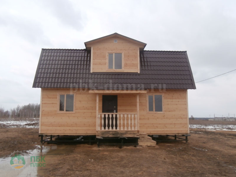 В комплектацию дома входит: фундамент свайно-винтовой, обваренный трубой, каркас из доски 40х150 мм, обработан антисептиком, утепление 150 мм, наружная и внутренняя отделка, кровля металлочерепица, отделка пола и потолка, отделка мансарды, окна, двери, доставка, сборка.