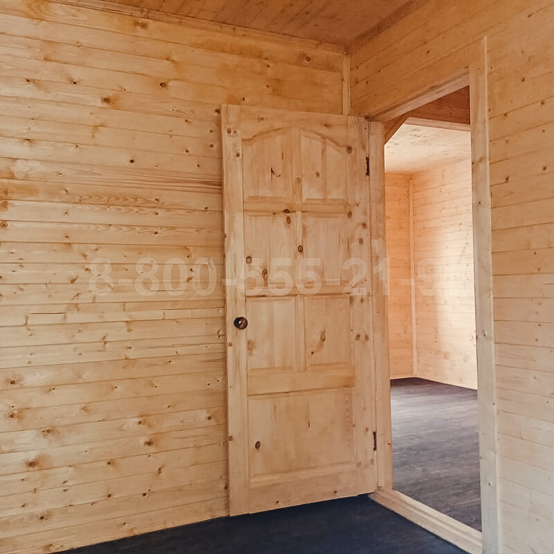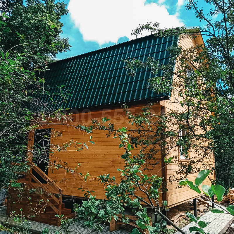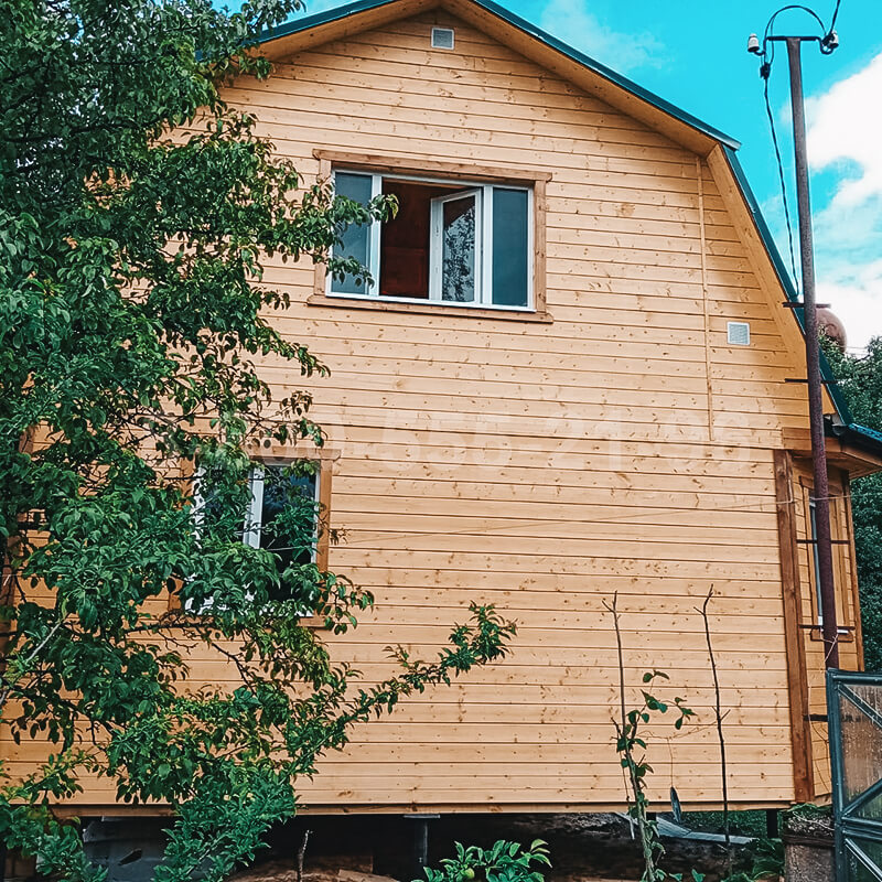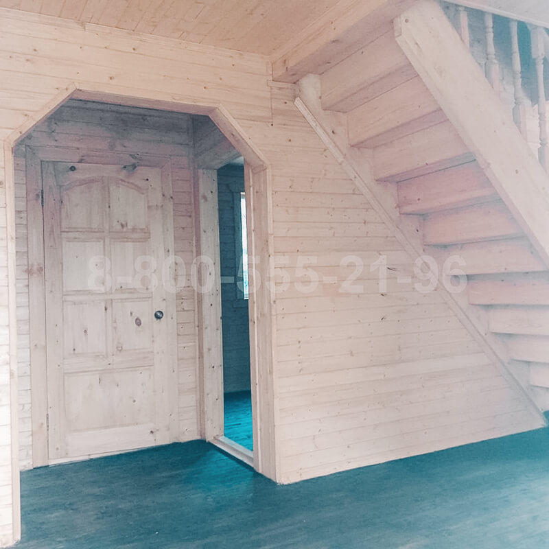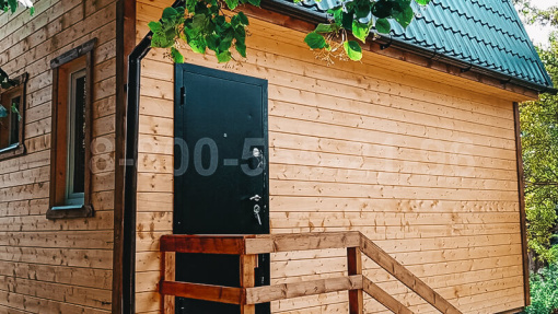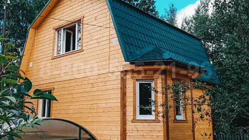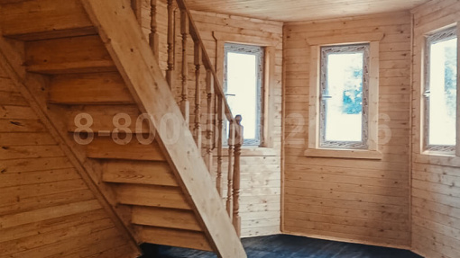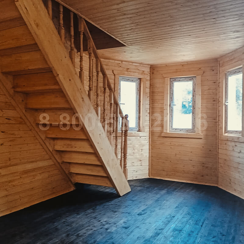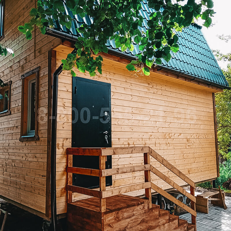Входит в стоимость: силовой каркас камерной сушки, свайно-винтовой фундамент, внутренняя и наружная отделка, окна и двери, кровля с комплектующими, утепление для постоянного проживания, водосточная система, покраска дома снаружи и электрика.