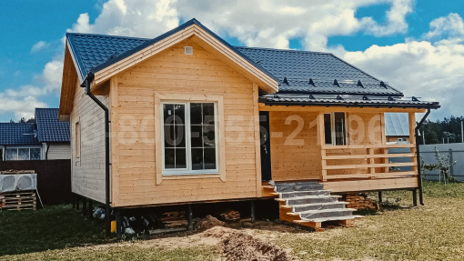 Входит в стоимость: силовой каркас камерной сушки, утепление для круглогодичного проживания, свайно-винтовой фундамент, внутренняя и наружная отделка, окна и двери, кровля с комплектующими, ветро-влагозащитные плиты Белтермо, водосточная система, отопление.