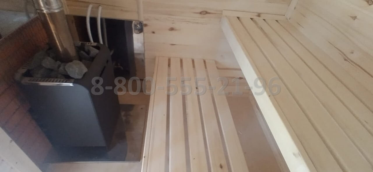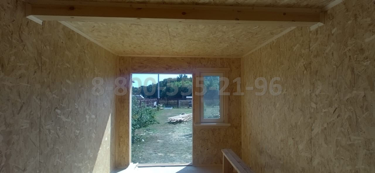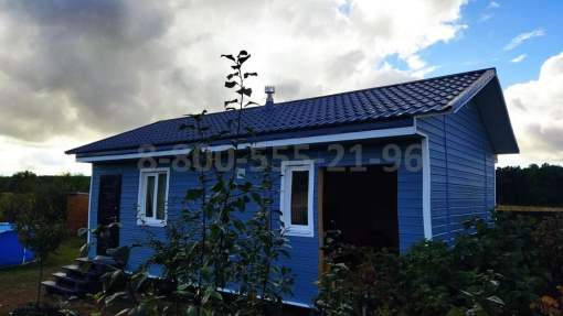 Выполненные работы: Фундамент Заказчика, силовой каркас из сухой калиброванной доски 50х100мм, утепление 100мм, отделка снаружи и внутри, кровля, окна и двери, печь, доставка, монтаж.