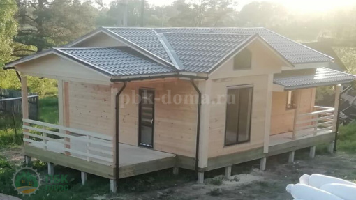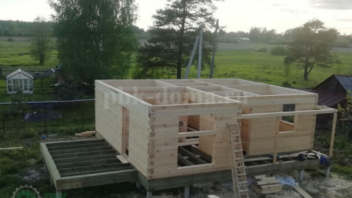 В комплектацию дома входит: профилированный брус 185х140 мм с пропилом, сборка сруба на деревянные нагеля в теплый угол, в оконных и дверных проемах ройки, металлочерпица, пластиковые окна, двери, внутренняя отделка пола и потолка, водосточная система, утепление пола и потолка 200 мм, доставка, сборка.