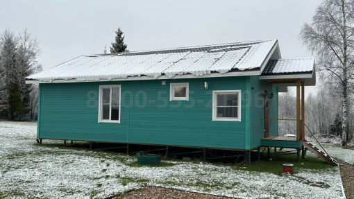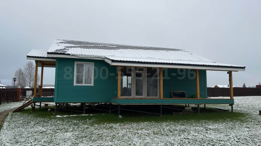 Выполненные работы: Cвайно-винтовой фундамент, силовой каркас из сухой калиброванной доски 50х150мм, утепление 150мм, ветрозащита-плиты БЕЛТЭРМО, отделка снаружи и внутри, покраска внутри и снаружи, кровля, окна и двери, электрика, отопление, сантехника, доставка, монтаж.