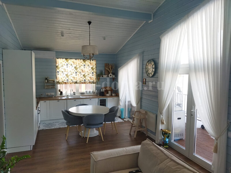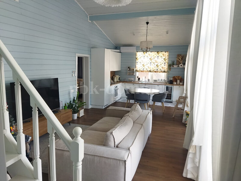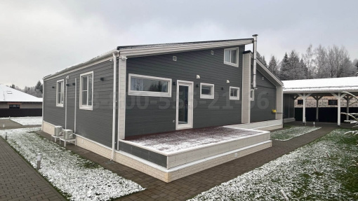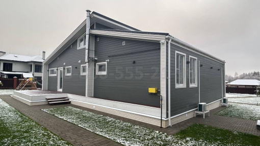 Выполненные работы: сваи ЖБИ, силовой каркас из сухой доски 50х150мм, утепление 150мм, ветрозащита-плиты БЕЛТЭРМО, отделка снаружи и внутри, покраска внутри и снаружи, кровля, окна и двери, водосточная система, электрика, отопление, доставка, монтаж.
