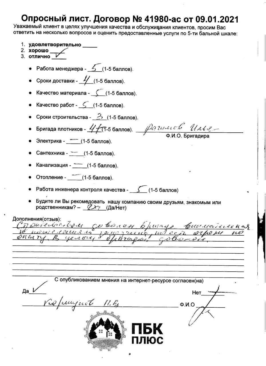 Строительством доволен. Бригада внимательная к пожеланиям заказчика, но есть огрехи по опыту. В целом, бригадой доволен.