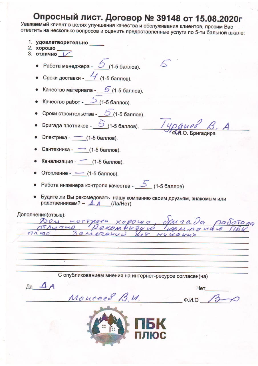Дом построен хорошо, бригада работала отлично. Рекомендую компанию "ПБК-плюс". Замечаний нет никаких.