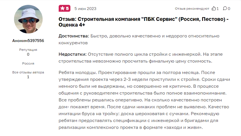 Ребята молодцы. Проектирование прошли за полтора месяца. После утверждения проекта через 2-3 недели приступили к стройке. Сроки сдачи немного были не выдержаны, но совершенно не критично. В процессе общения с руководителем строительства было полное взаимопонимание. Все проблемы решались оперативно. На сколько качественно построен дом- покажет время. После сдачи никаких проблем не выявлено. Качество имитации бруса на тройку: доска шероховатая с сучками. Рекомендую ребятам предоставлять спецификации с инженеркой и бригадами для реализации комплексного проекта в формате «заходи и живи».