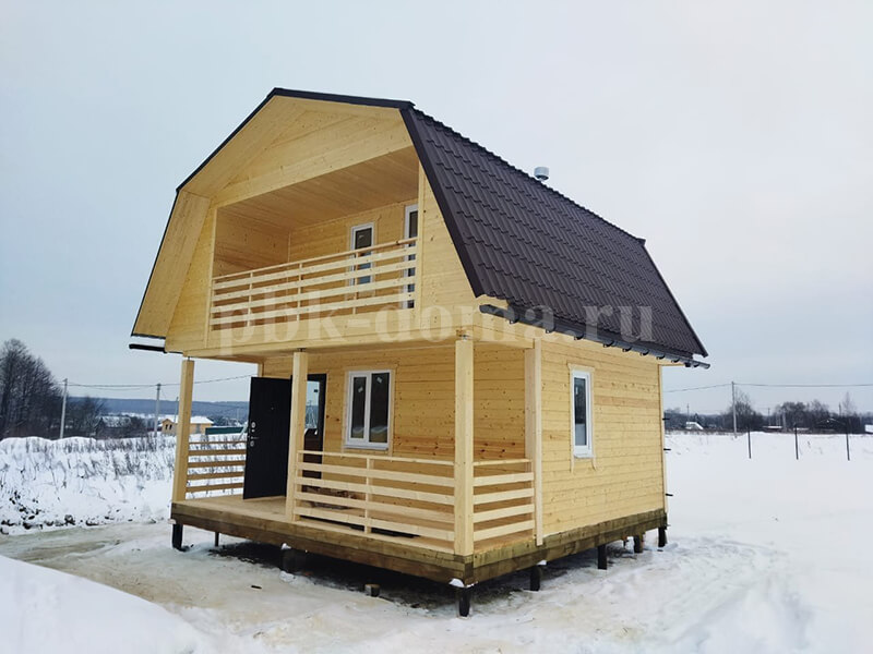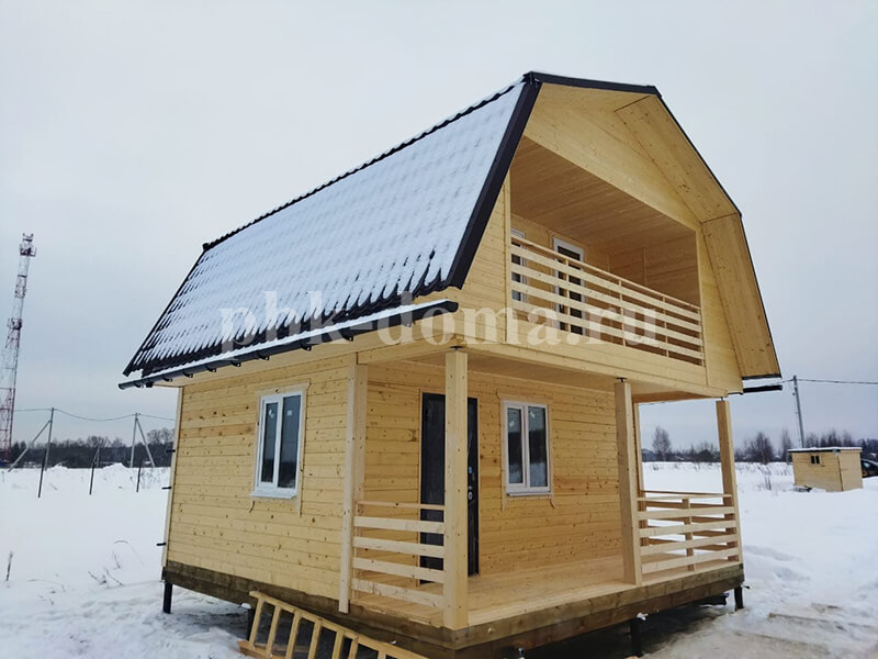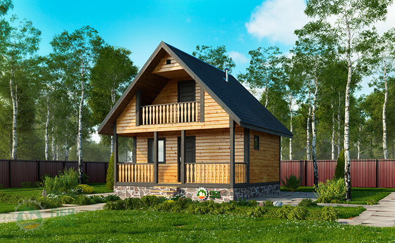 Баня из бруса «Питьба» 6х6 с мансардой, террасой и балконом