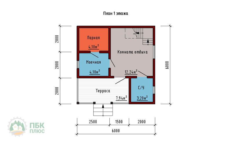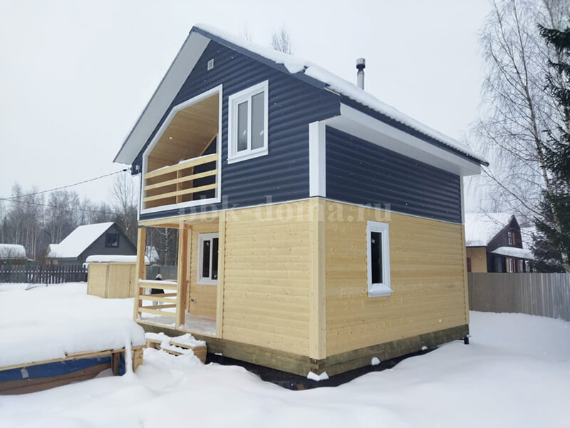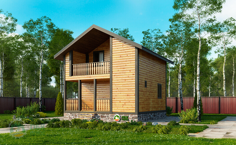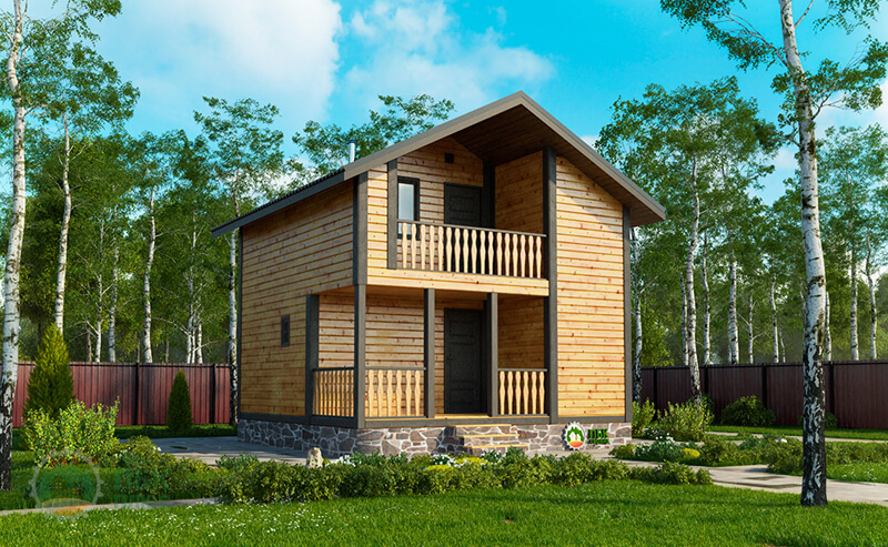 Баня из бруса «Робейка» 6х6 в полтора этажа с террасой