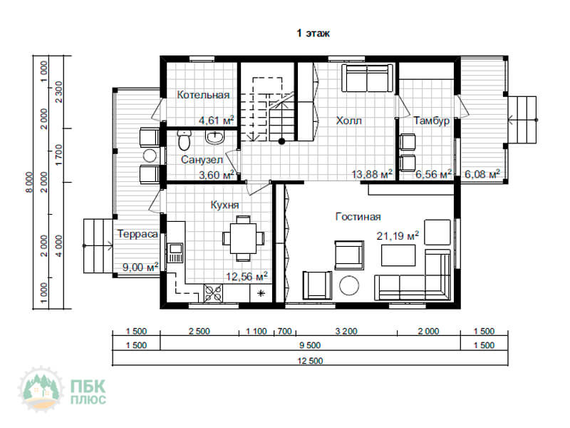 Большой дом из бруса «Алазея» 12.5х8 с террасой