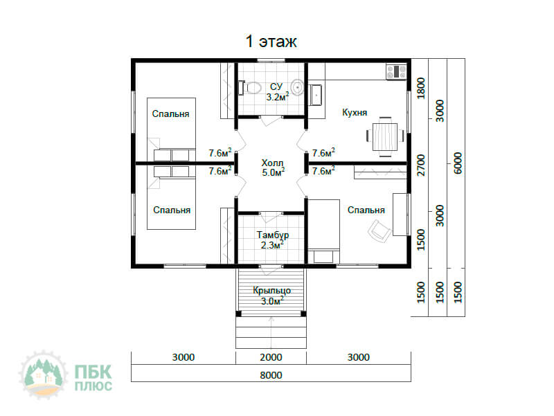 Дачный домик из бруса «Нолгаш» 8х6 с крыльцом