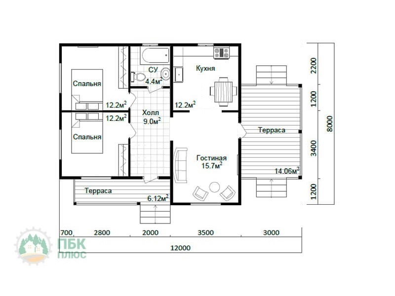 Дом из бруса «Безгодовка» 12х8 с террасой