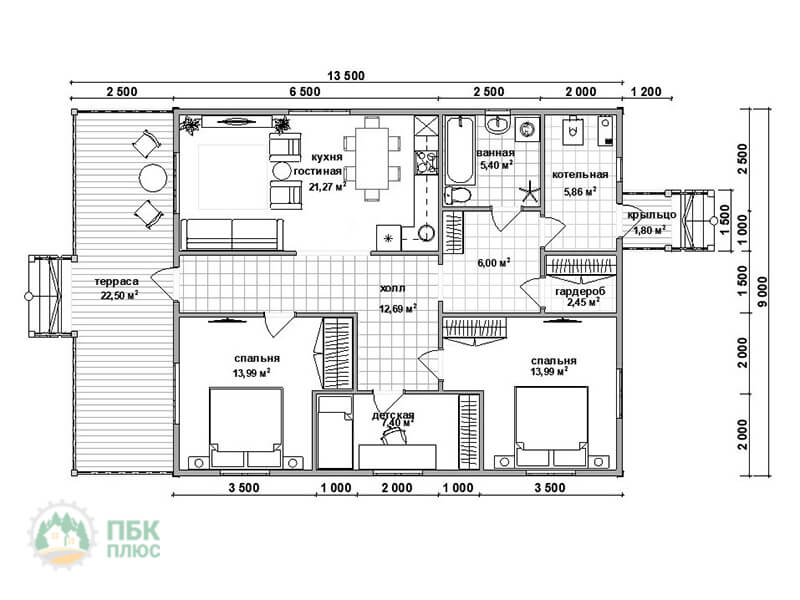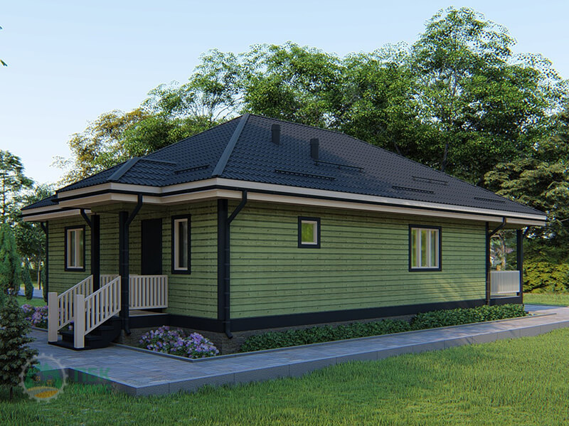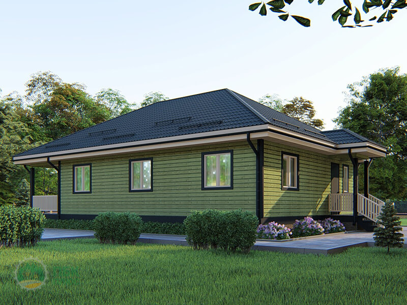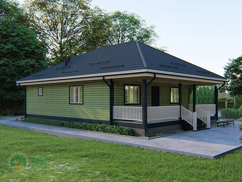 Одноэтажный дом из бруса «Арда» 13,5х9 с террасой