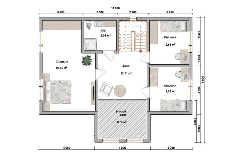 Дом со вторым светом «Москва» – просторный объект с функциональной планировкой, который не оставит равнодушными ценителей загородного отдыха. Дом может использоваться для постоянного проживания, планировка позволяет принимать гостей и оставляет пространство для дизайнерских решений.