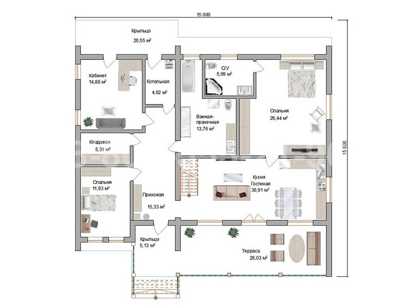 Внешняя отделка: Имитации бруса сорт "АВ"