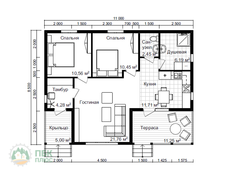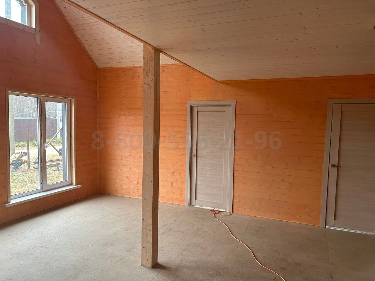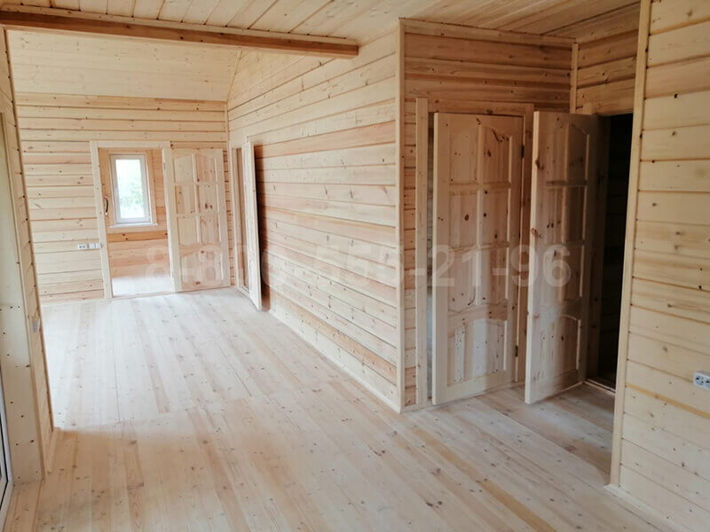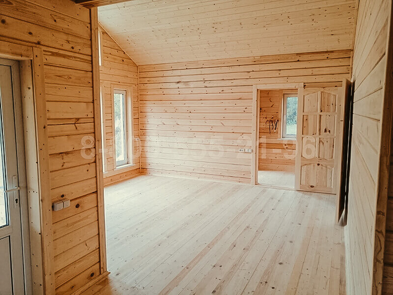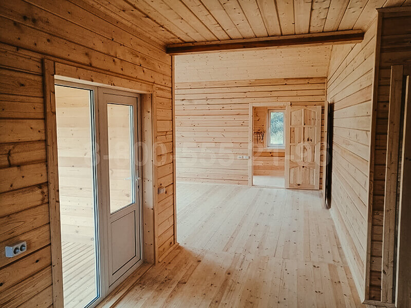 В доме есть гостиная, в которой можно установить мягкую мебель, телевизор, электрокамин и столик – обустроить пространство для приятного отдыха и работы. Санузел и душевая раздельные, предусмотрен тамбур для хранения сезонных вещей. Доступны кухня и 2 непроходные спальни. Внутренняя планировка продумана до мелочей, поэтому гарантировано уединение каждого жильца.