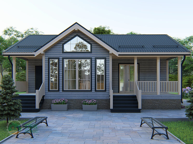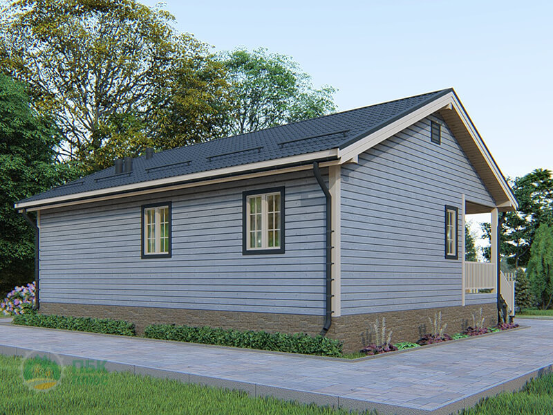 Одноэтажный дом «Нил» – практичное решение для семьи из 3-4 человек, которое открывает возможности как для сезонного, так и для всесезонного проживания. Отвечает современным требованиями к эргономичности планировки, дизайну и комфорту.