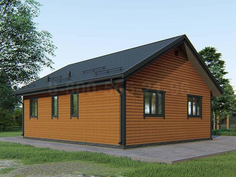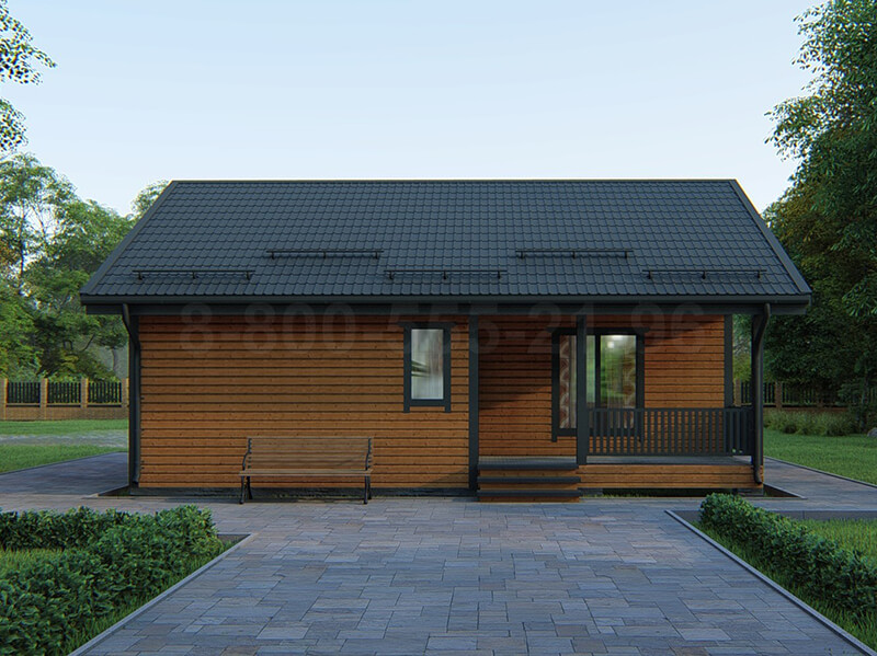 Одноэтажный каркасный дом «Рейн» – объект с повышенной комфортностью, планировка которого предусматривает наличие большой террасы. Высокая эргономичность, эстетическая привлекательность и достойный уровень комфорта удовлетворят требования самых взыскательных хозяев.